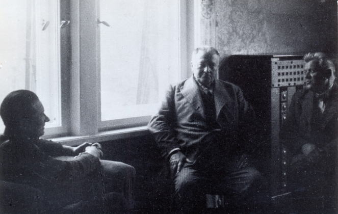 Та самая ночь на 16 мая 1934. В кабинете у Карлиса Улманиса (в центре)- Алфред Берзиньш и Янис Балодис.